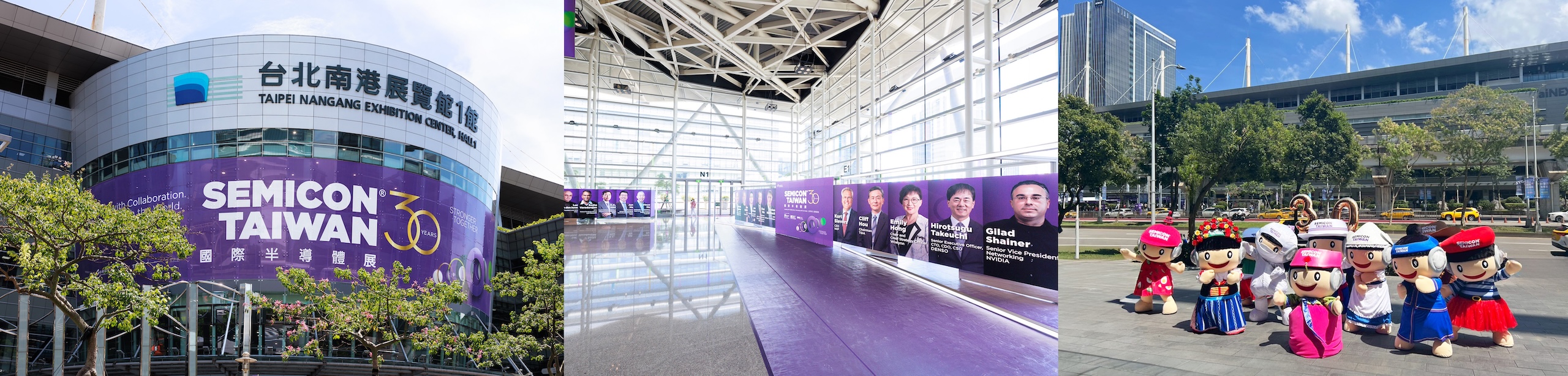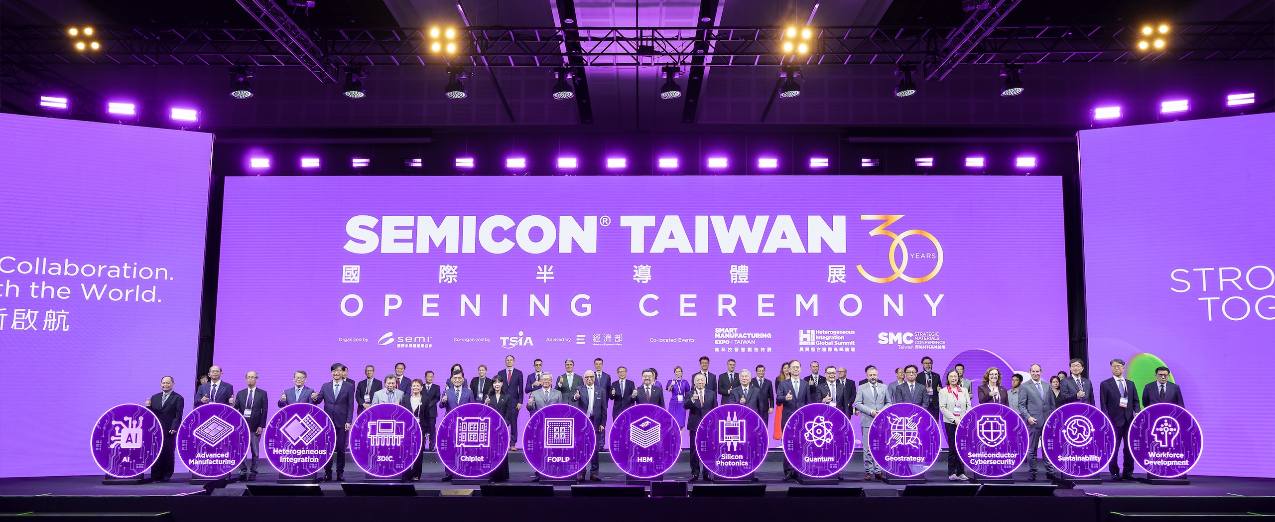 各展區透過色塊分層、動態粒子、技術圖示與圓環語彙,呈現 AI、先進封裝、量子、永續製造等領域的聚焦座標,使整個展覽成為一個兼具儀式感、專業度與全球視野的技術舞台,將半導體產業的加速、連結與共創精神具象化。