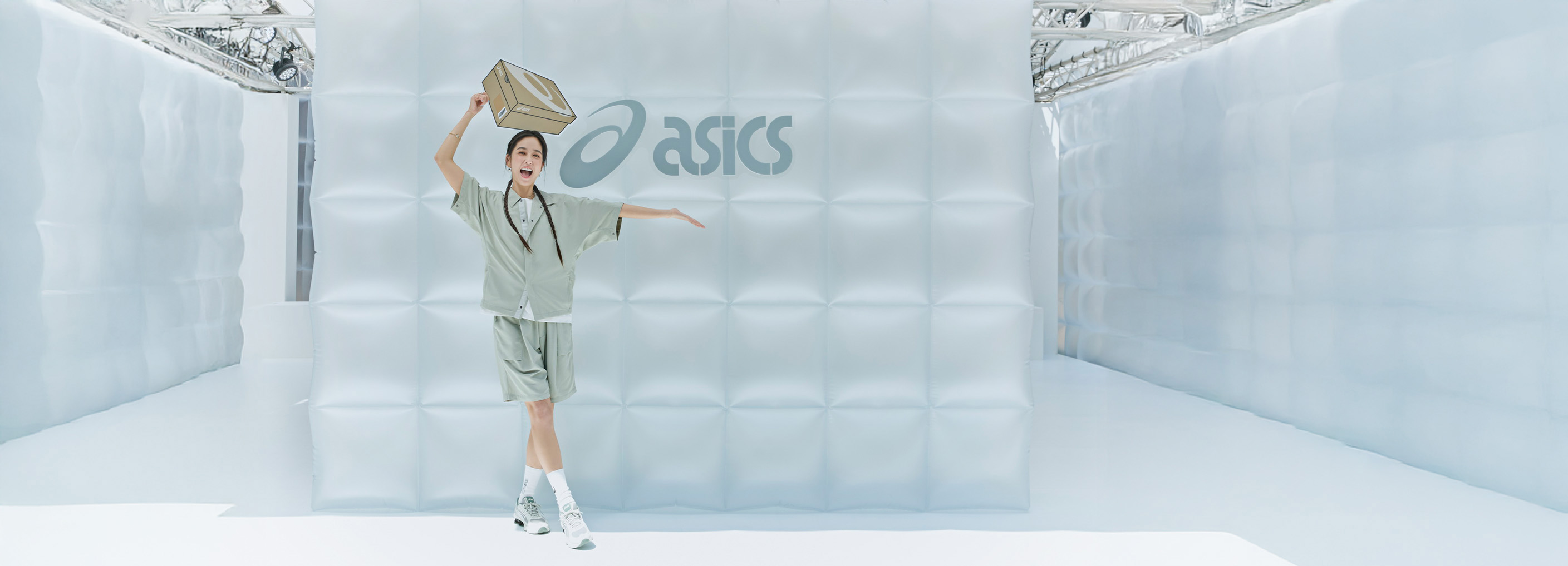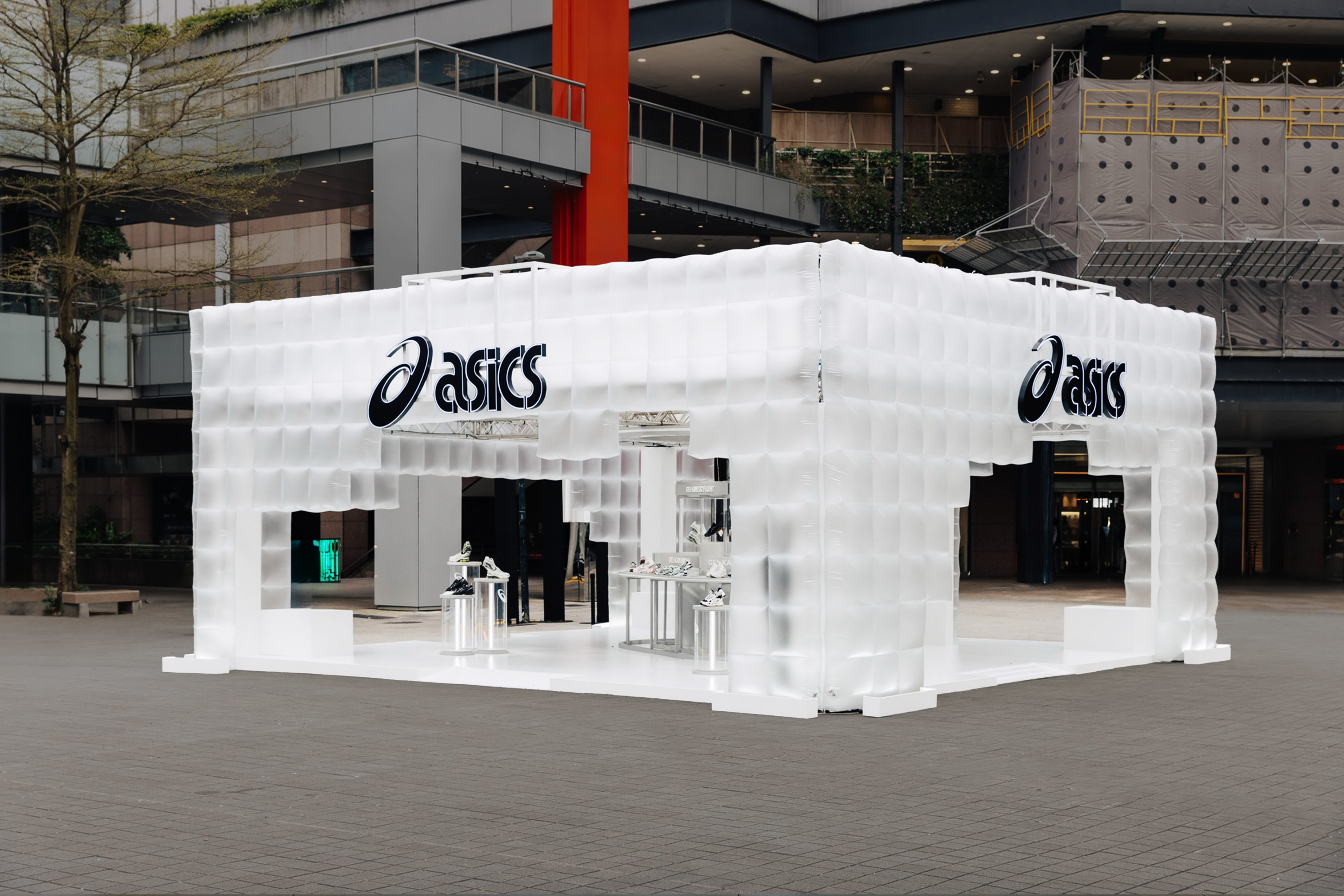 穿梭在高聳白牆之間,觀者彷彿置身一個被「凝結的空氣」所構築的異質場域——純粹、精準、動能充盈。整體以極簡卻富未來感的語彙,重新詮釋 ASICS 的潮流能量與品牌姿態。