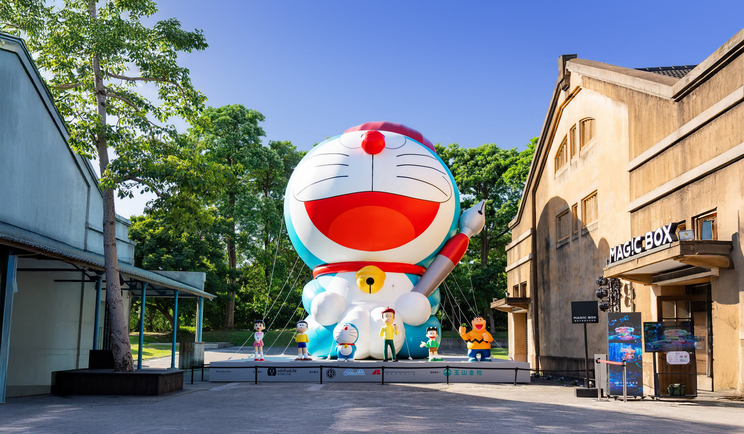 以角色魅力為核心,打造出沉浸式的漫畫宇宙。從戶外巨型哆啦A夢與主要角色的迎賓場景開始,放大比例的造型結構與鮮明色塊立即形成強烈識別。